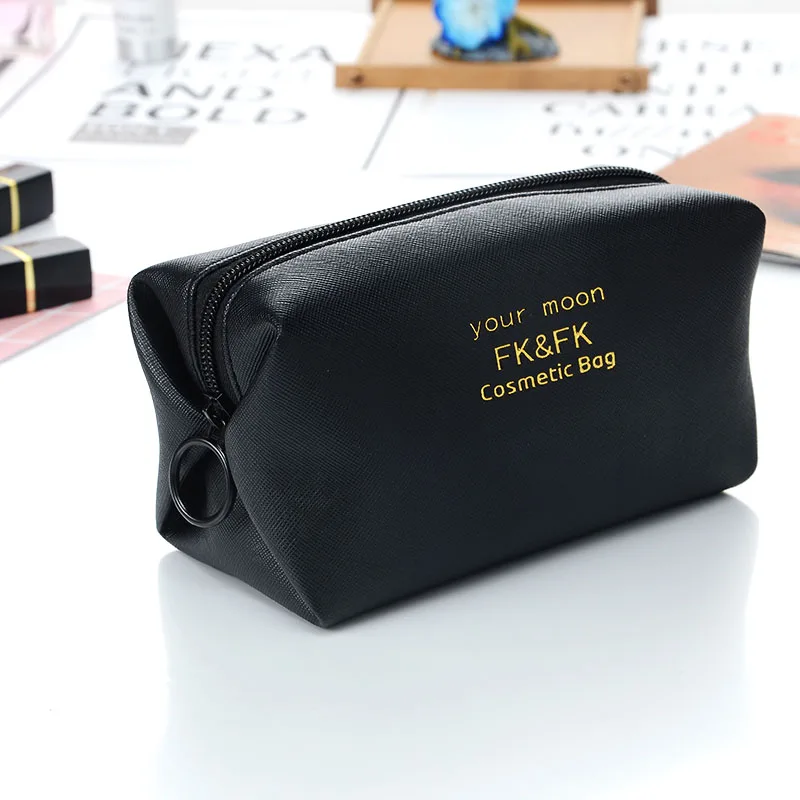 Arpimala 2018 Pu Leather Cosmetic Bag Small Stripe Makeup Bag Black Gold Toiletry Bag Women Travel Organizer Make Up Vanity Case