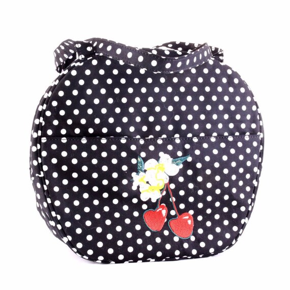 Sale Vintage Style Beach Bag Small Beach Bag Retro Vanity Case Retro Polka Dot Shoulder Bag Cherry Blossom Retro Makeup Case