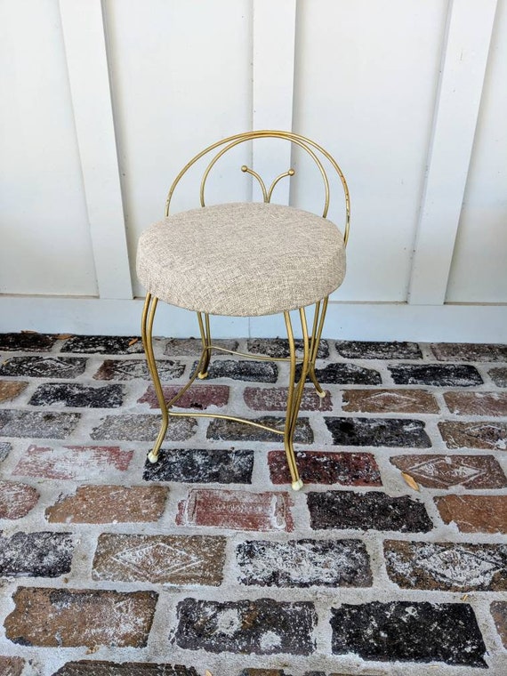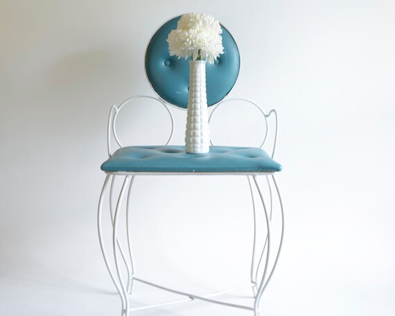 Vintage Vanity Chair Wrought Iron Vinyl Vanity Stool Vintage Bathroom Chair Mid Century Modern Vanity Chair Bathroom Decor