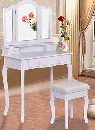Zimtown Zimtown Tri Folding Set Makeup Table Mirror Vanity Dresser Dressing Desk 4 Drawers Bedroom Wood From Wal Mart Usa Llc Real Simple