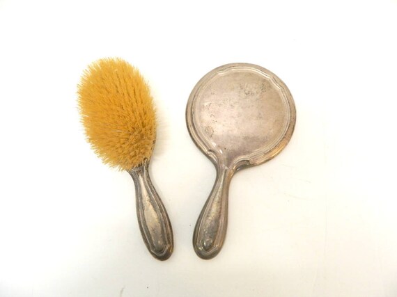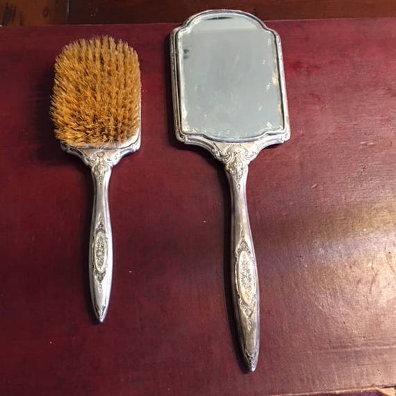Vintage Vanity Set Silver Plated Hair Brush Hand Mirror