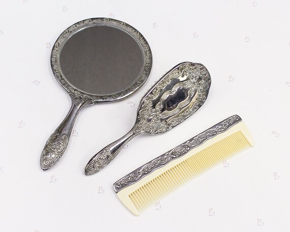 Stainless Steel Vanity Brush Mirror And Comb Set Vanity Gift For Her Vintage Vanity Set Vintage Hand Mirror Vanity Mirror Woman Gift