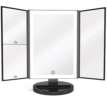 Makeup Vanity Mirror With Led Lights Bundle 7 Piece Bonus Brush Set Magnification 1x2x3 Portable