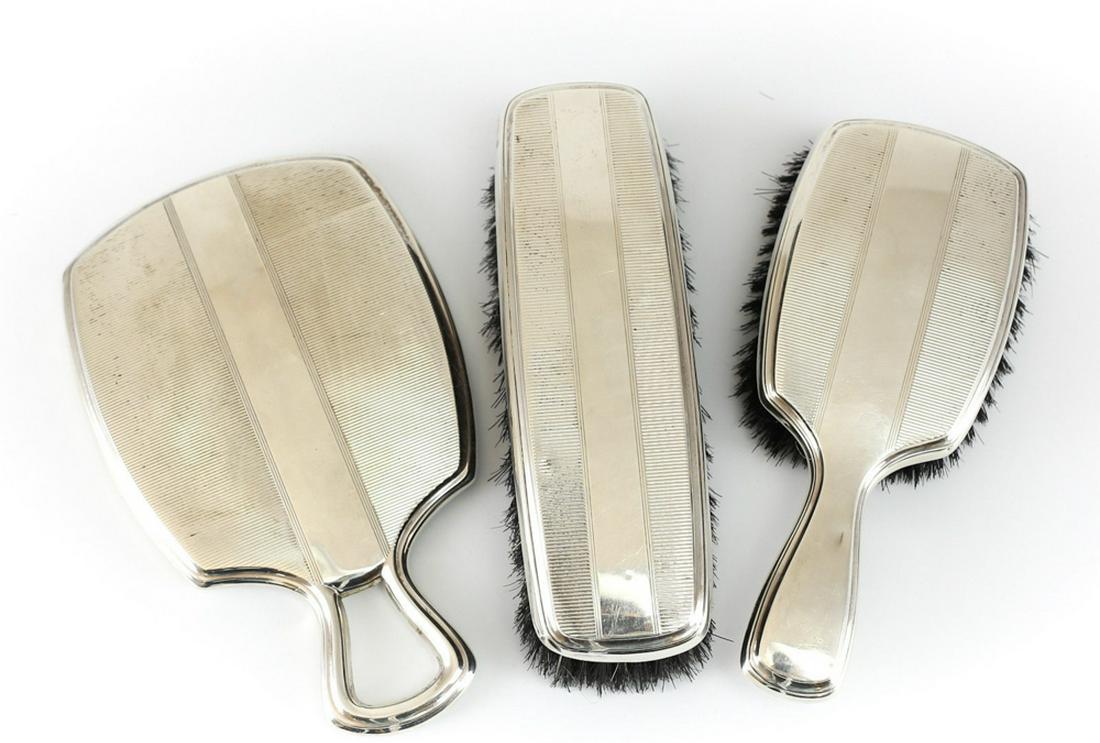 Details About Art Deco Silver Vanity Brush Hand Mirror Set Birmingham Hall Marked P
