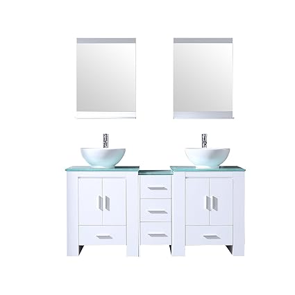 Bathjoy 60 White Double Wood Bathroom Vanity Cabinets And