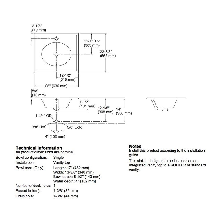 Kohler K2791 Ceramic 25 Oval Vanity Top Sink Single Faucet