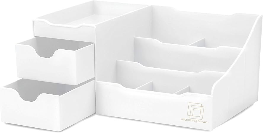 Uncluttered Designs Makeup Organizer With Drawers Chic Countertop Storage For Cosmetics Elegant Vanity Holder For Brushes Eyeshadow Lotions