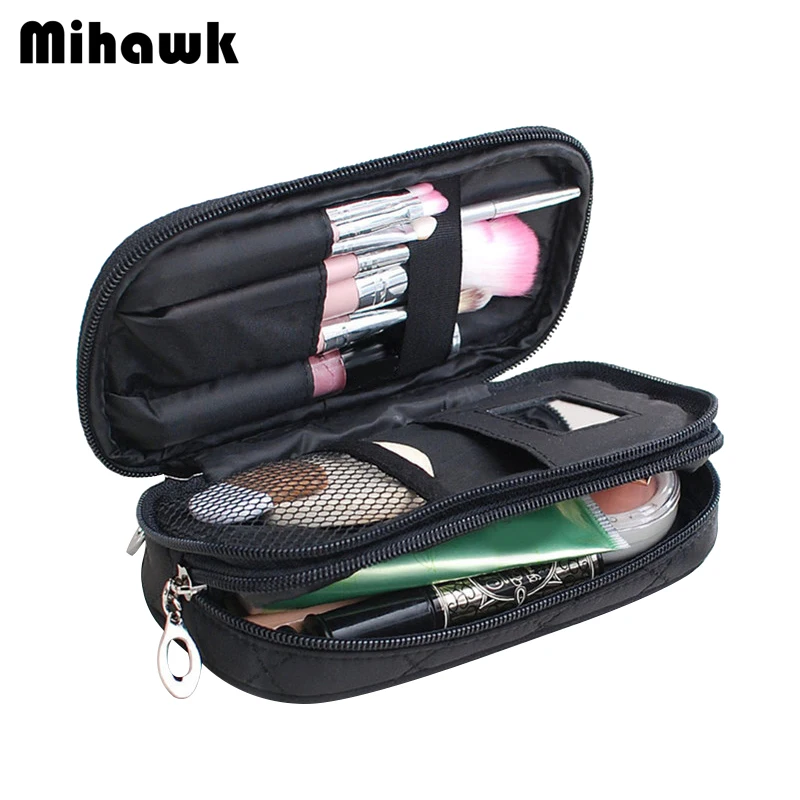 Mihawk Mini Double Layer Cosmetic Bag Travel Organizer Functional Makeup Pouch Vanity Case Toiletry Brush Storage Accessories