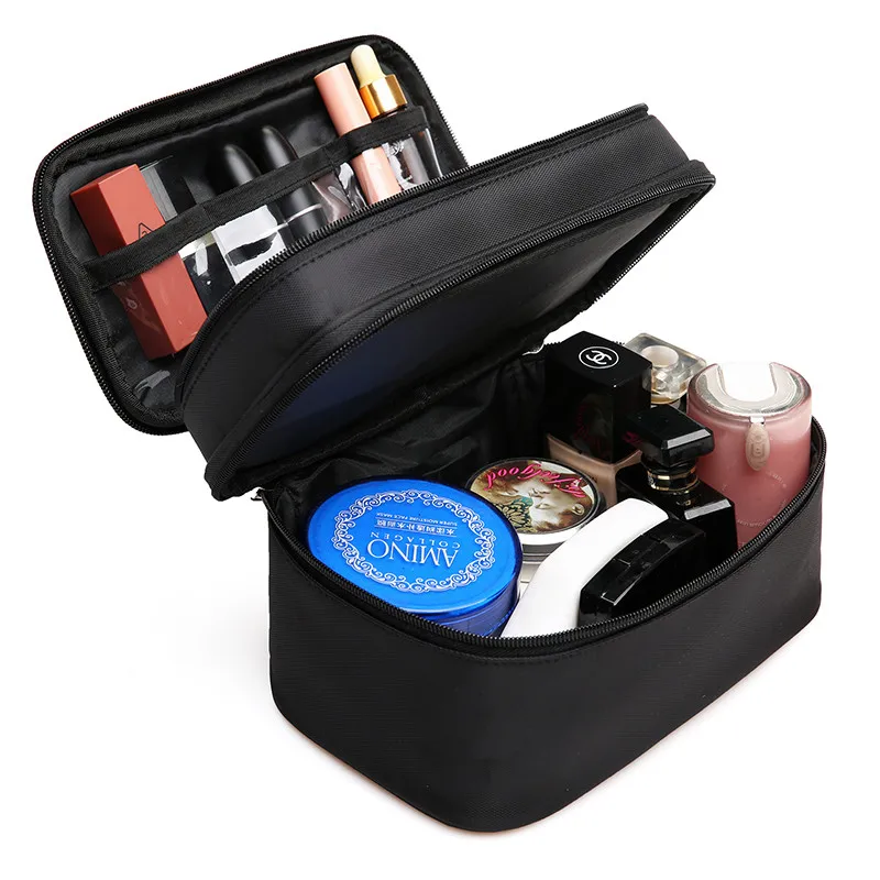 Women S Double Layer Cosmetic Bag Box Waterproof Oxford Makeup Case Travel Organizer Necessary Beauty Vanity Toiletry Wash Pouch