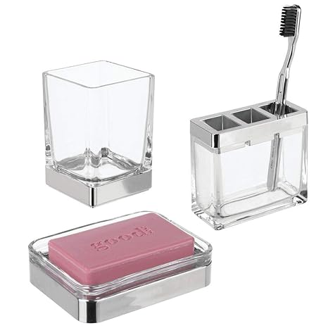 Mdesign Decorative Glass Bath Accessory Set For Bathroom Vanity Countertops And Sinks Rustproof Includes Toothbrush Holder Tumbler Cup And Soap