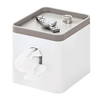 Idesign Cade Facial Tissue Cover Boutique Box Bathroom Holder For Vanity Countertops Desk Office Dorm Matte White Gray