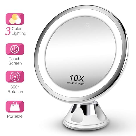 Makeup Mirror 10x Magnifying Vanity Mirror 3 Color Modes 36 Led Cosmetic Mirror High Definition Touch Control 360 Rotation Powerful Suction