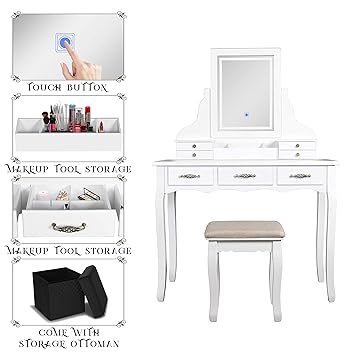Details About Home Studio Vanity Set Dressing Table Led Lighted Mirror And Drawer Makeup Desk