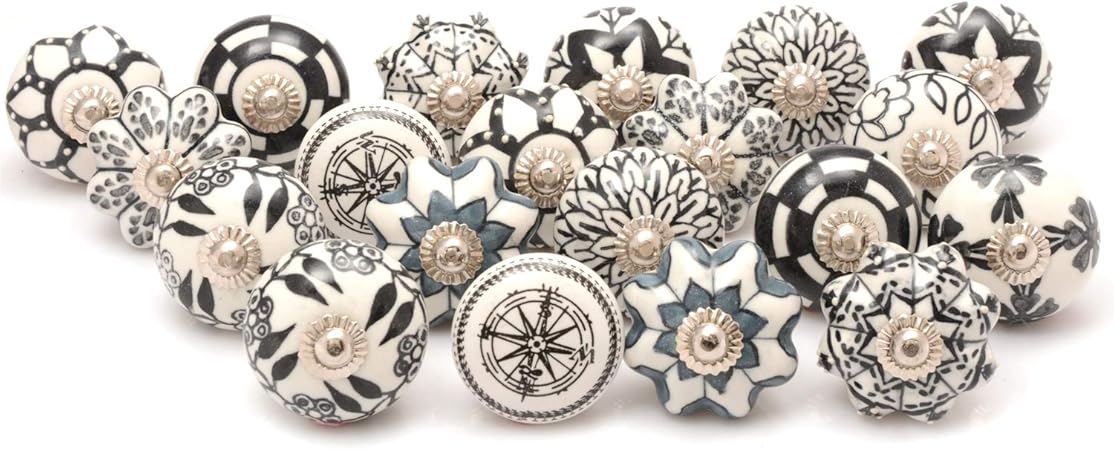 Zahra Premium Quality Assorted Ceramic Knobs Multi Color Mix Designed Ceramic Cupboard Cabinet Door Knobs Drawer Pulls Chrome Hardware 20 Black