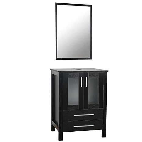 U Eway 24 Black Bathroom Vanity Top Modern With 2 Drawers Wood Mdf 20 Inch Deep Bathroom Vanity Cabinet With Mirror