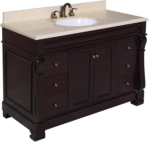 Westminster 48 Inch Bathroom Vanity Travertine Chocolate Includes Chocolate Cabinet With Soft Close Drawers Natural Travertine Stone Countertop