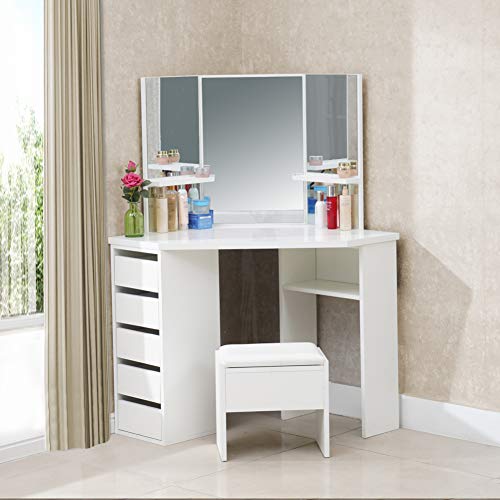 Lycka Land Luck Land Triple Mirror Dresser Stool With Fll 0034 Vanity Dresser Mirror Cosmetic Storage Makeup Units Mirror Organize Shelves