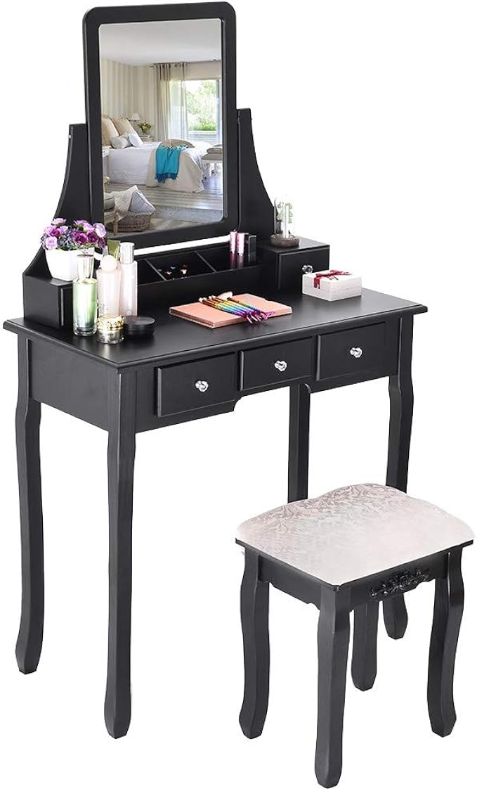Tadami Dressing Table Vanity Set With Mirror Cushioned Stool Vanity Makeup Table Dividers Movable Organizers